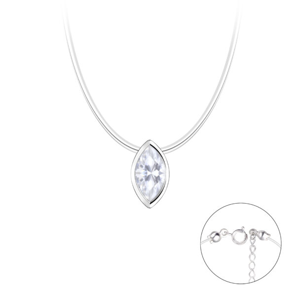 3x6mm Marquise Cubic Zirconia Silver Invisible Necklace