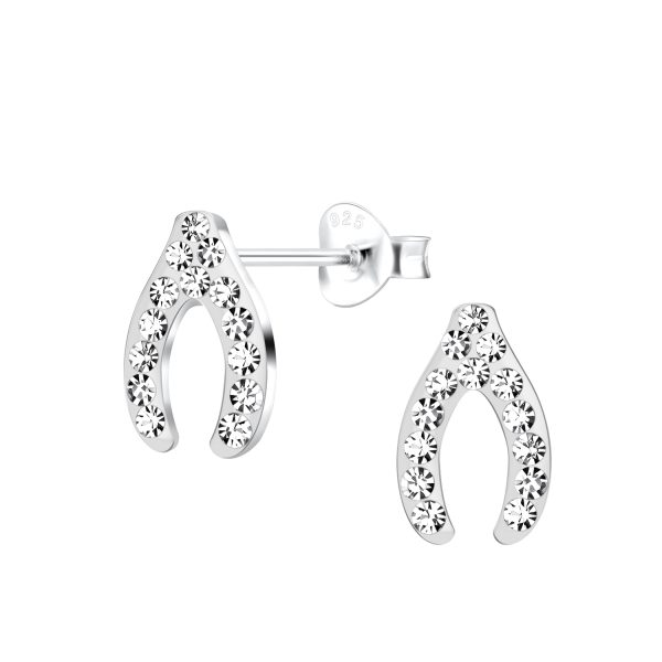 Silver Wishbone Crystal Stud Earrings