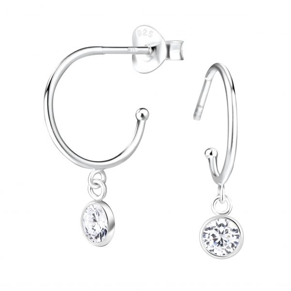 Silver Round Half Hook Stud Earrings