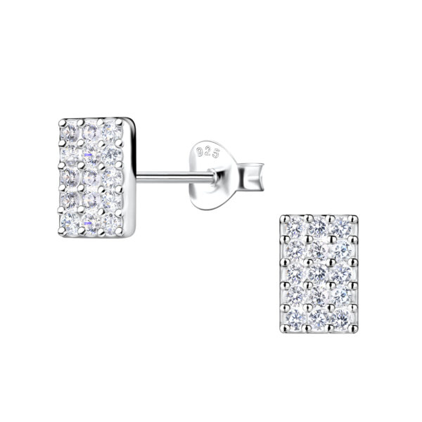 Silver Rectangle Stud Earrings