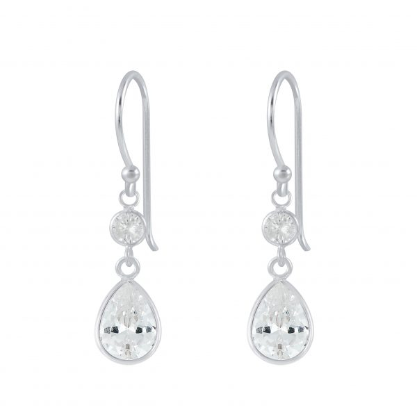 Silver Tear Drop Cubic Zirconia Dangle Earrings
