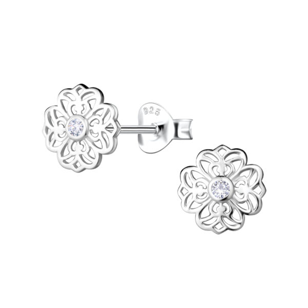 Silver Filigree Flower Stud Earrings
