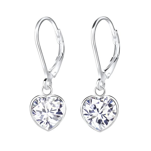 8mm Heart Cubic Zirconia Silver Lever Back Earrings