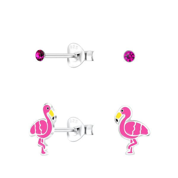 Silver Flamingo Stud Earrings Set