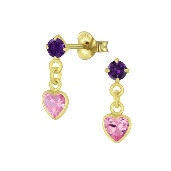 Silver Heart Cubic Zirconia Drop Stud Earrings