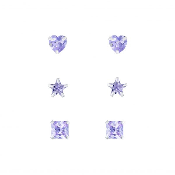 4mm Cubic Zirconia Silver Stud Earrings Set
