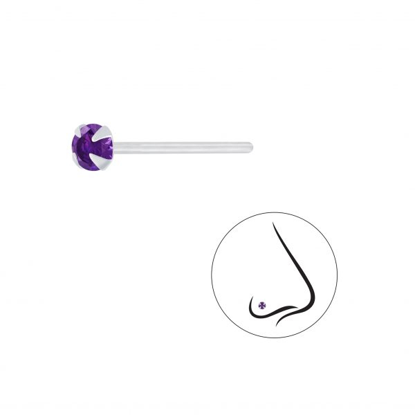 3mm Round Cubic Zirconia Silver Nose Stud