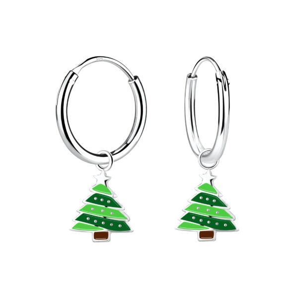 Silver Christmas Tree Charm Hoop Earrings