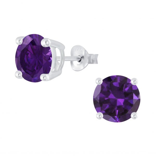 8mm Round Cubic Zirconia Silver Stud Earrings