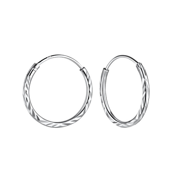 15mm Silver Diamond Cut Hoop Earrings