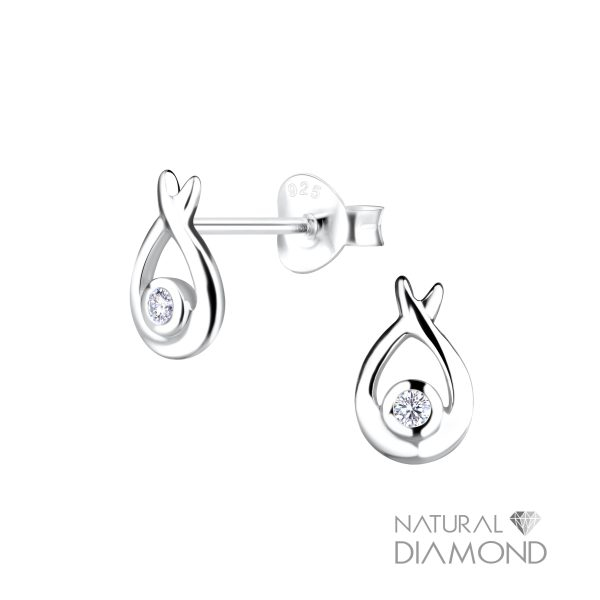 Silver Tear Drop Stud Earrings With Natural Diamond