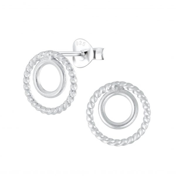 Silver Twisted Circle Stud Earrings