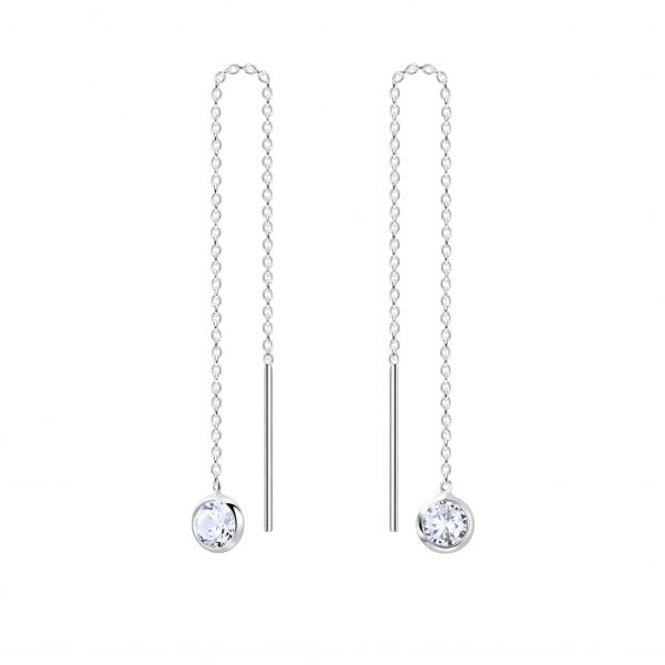 4mm Round Cubic Zirconia Silver Thread Through Earrings