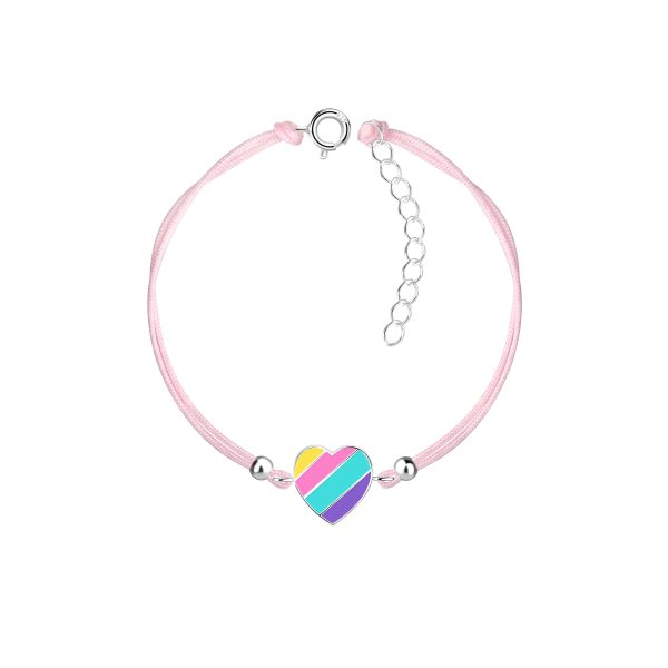 Silver Rainbow Heart Cord Bracelet