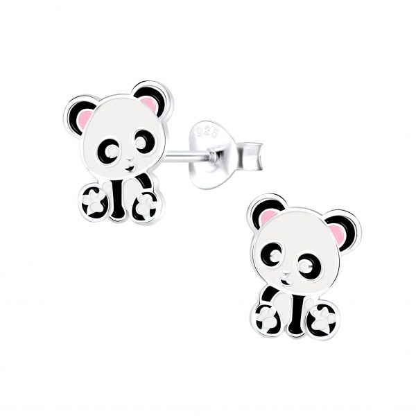 Silver Panda Stud Earrings