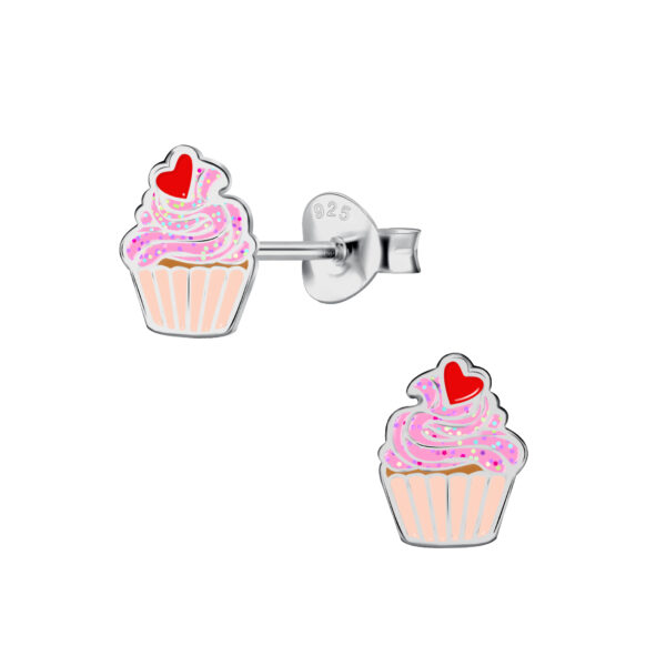 Silver Cupcake Stud Earrings