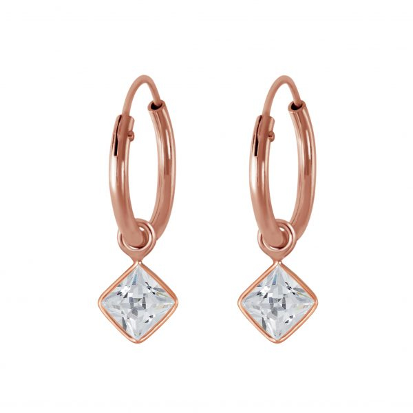 4mm Square Cubic Zirconia Silver Charm Hoop Earrings