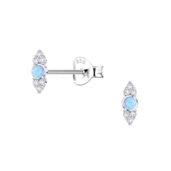Silver Geometric Opal Stud Earrings
