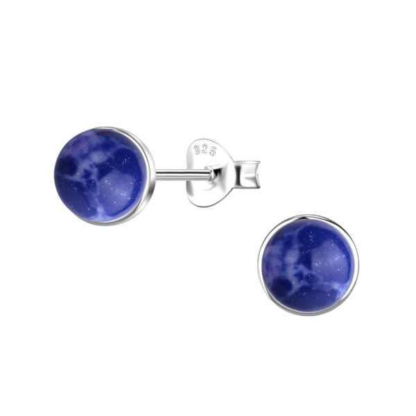 6mm Round Imitation Stone Silver Stud Earrings