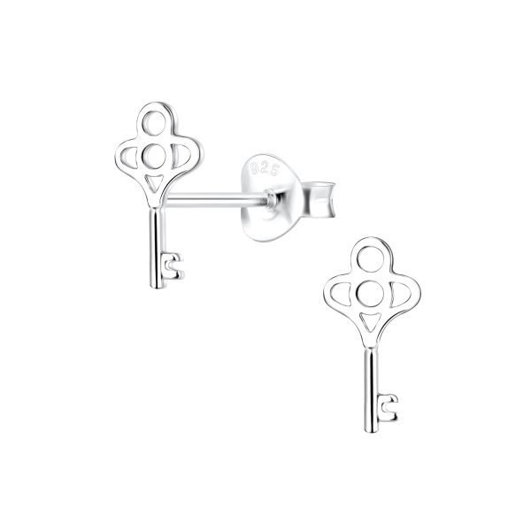 Silver Key Stud Earrings