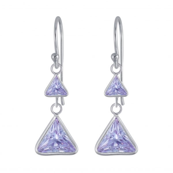 Silver Triangle Cubic Zirconia Dangle Earrings
