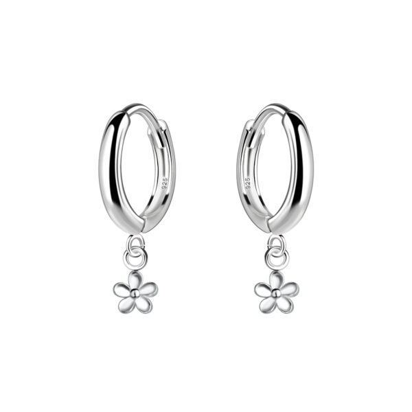 Silver Flower Charm Huggie Earrings