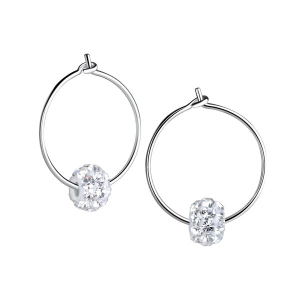 6mm Crystal Ball Silver Hoop Earrings