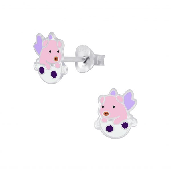 Silver Flying Pig Stud Earrings