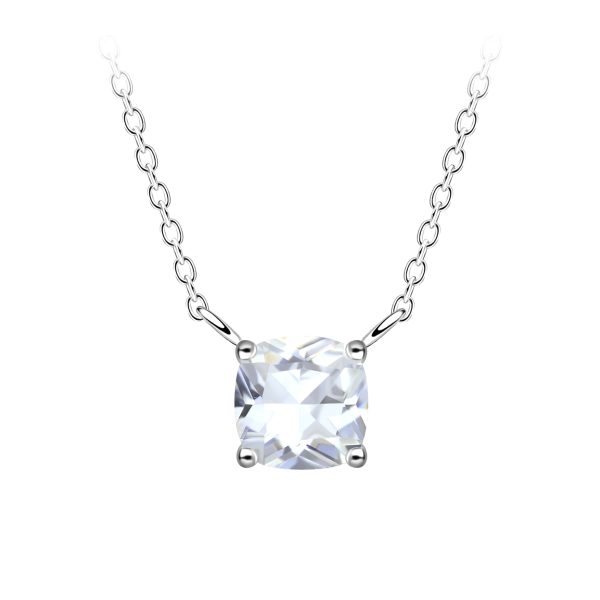 6mm Cushion Cubic Zirconia Silver Necklace