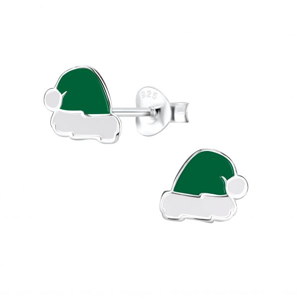 Silver Santa Hat Stud Earrings
