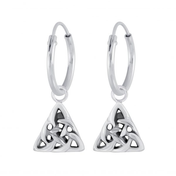 Silver Celtic Triangle Charm Hoop Earrings