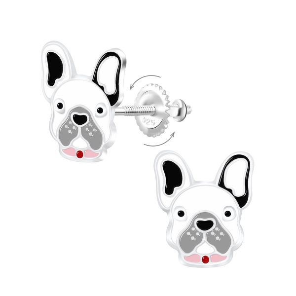 Silver Bulldog Screw Back Earrings