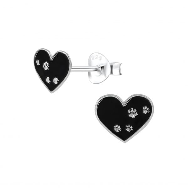 Silver Paw Print Heart Stud Earrings