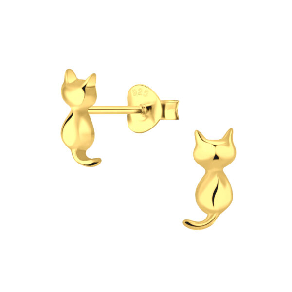 Silver Cat Stud Earrings