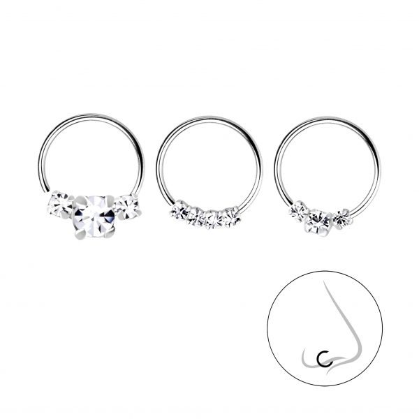 10mm Silver Crystal Nose Ring Set - Pack of 3