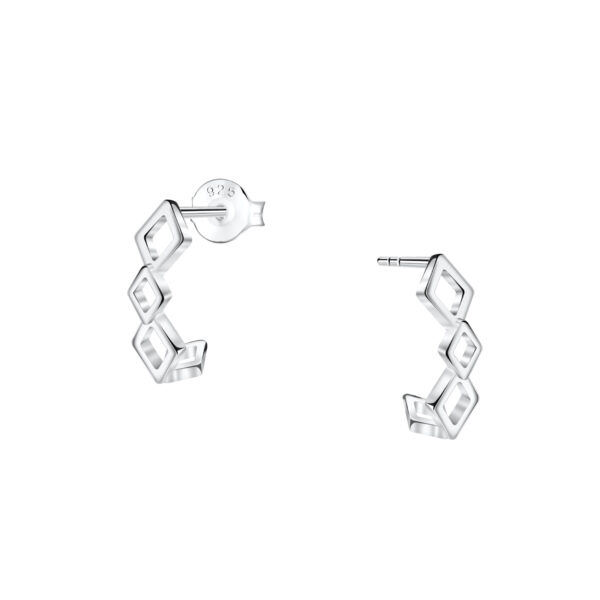 Silver Geometric Half Hoop Stud Earrings