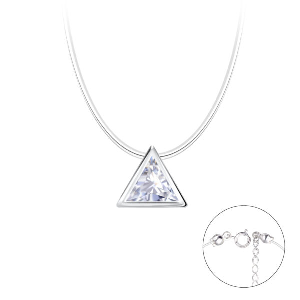6mm Triangle Cubic Zirconia Silver Invisible Necklace