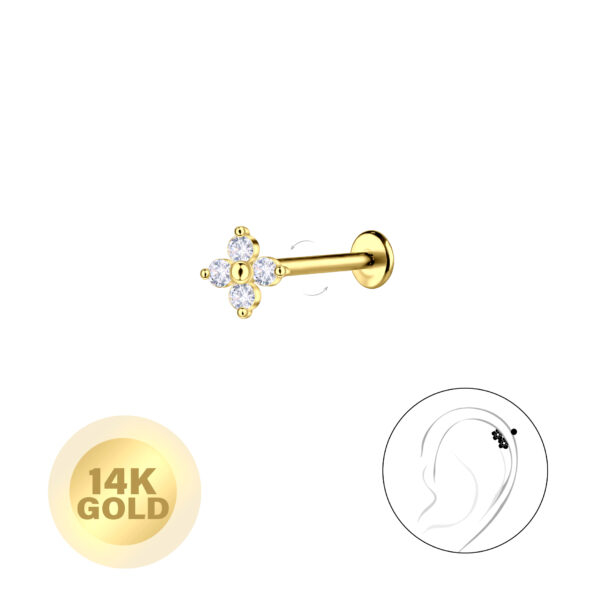 14K Solid Gold - Flower Labret with 3mm Disc