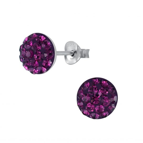 Silver Round Crystal Stud Earrings