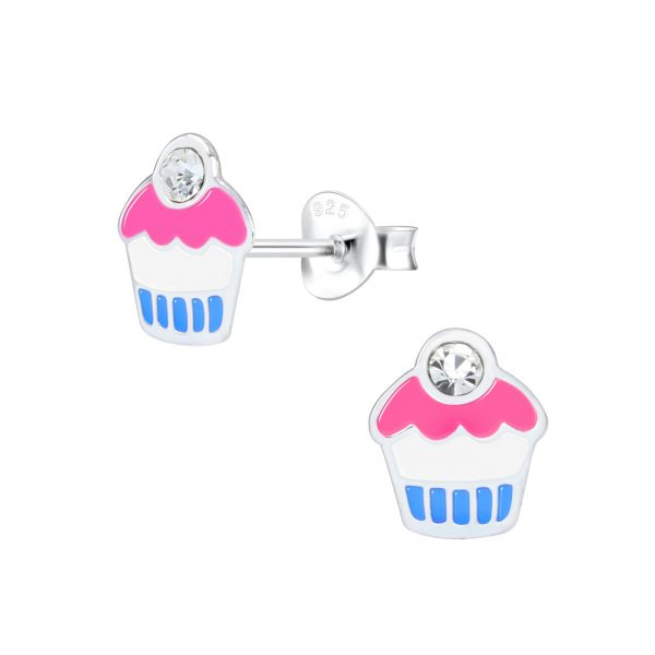 Silver Cupcake Stud Earrings