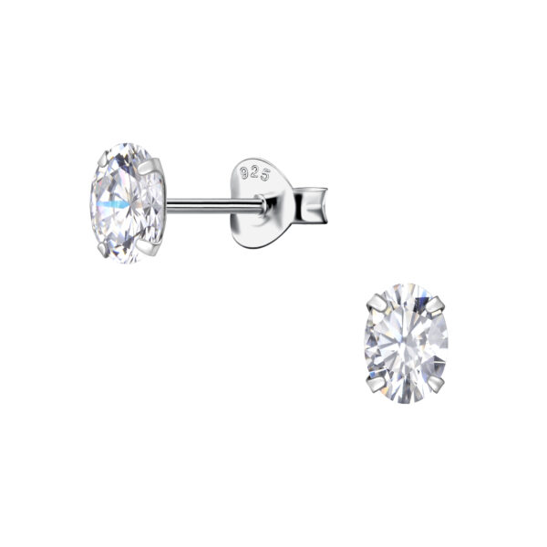 4x6mm Oval Cubic Zirconia Silver Stud Earrings