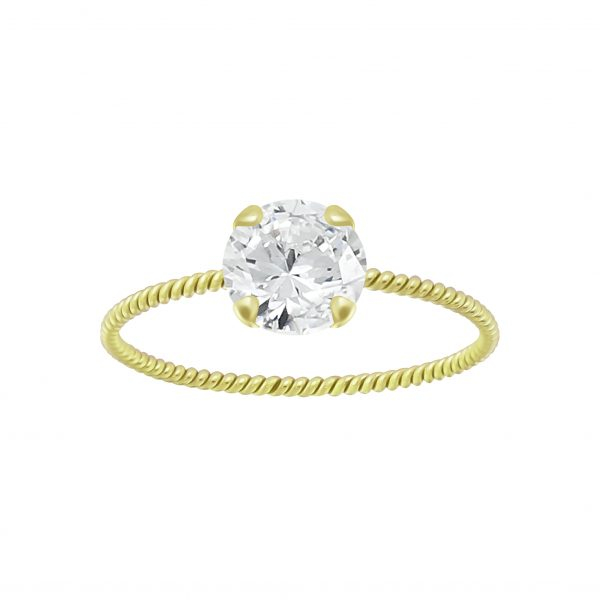 6mm Round Cubic Zirconia Silver Twisted Band Solitaire Ring