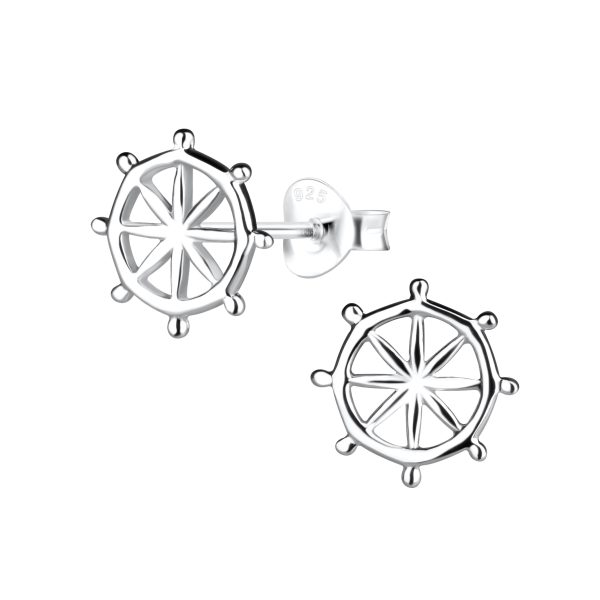 Silver Ship Wheel Stud Earrings