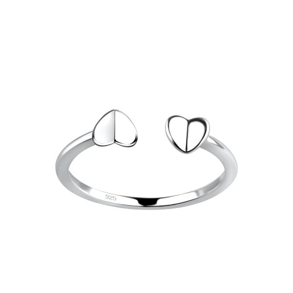 Silver Opened Double Heart Ring