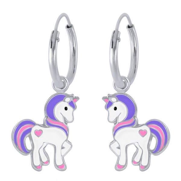 Silver Unicorn Charm Hoop Earrings