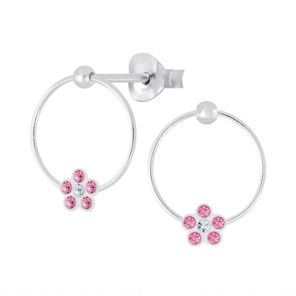 Silver Flower Crystal Stud Earrings