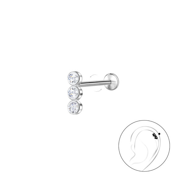 4mm Round Cubic Zirconia Silver Charm Hoop Earrings