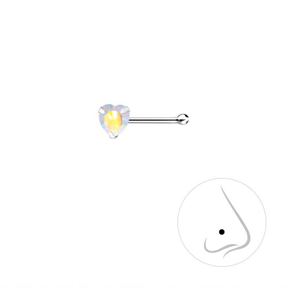 3mm Heart Cubic Zirconia Silver Nose Stud with Ball