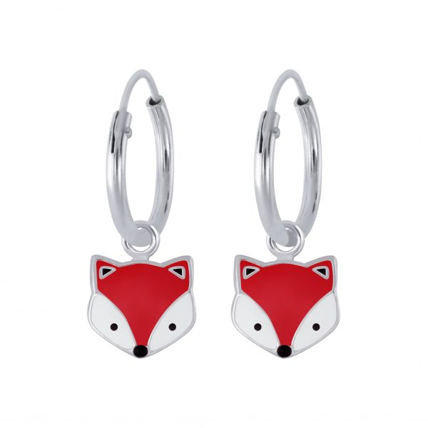 Silver Fox Charm Hoop Earrings