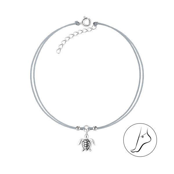 Silver Turtle Cord Anklet